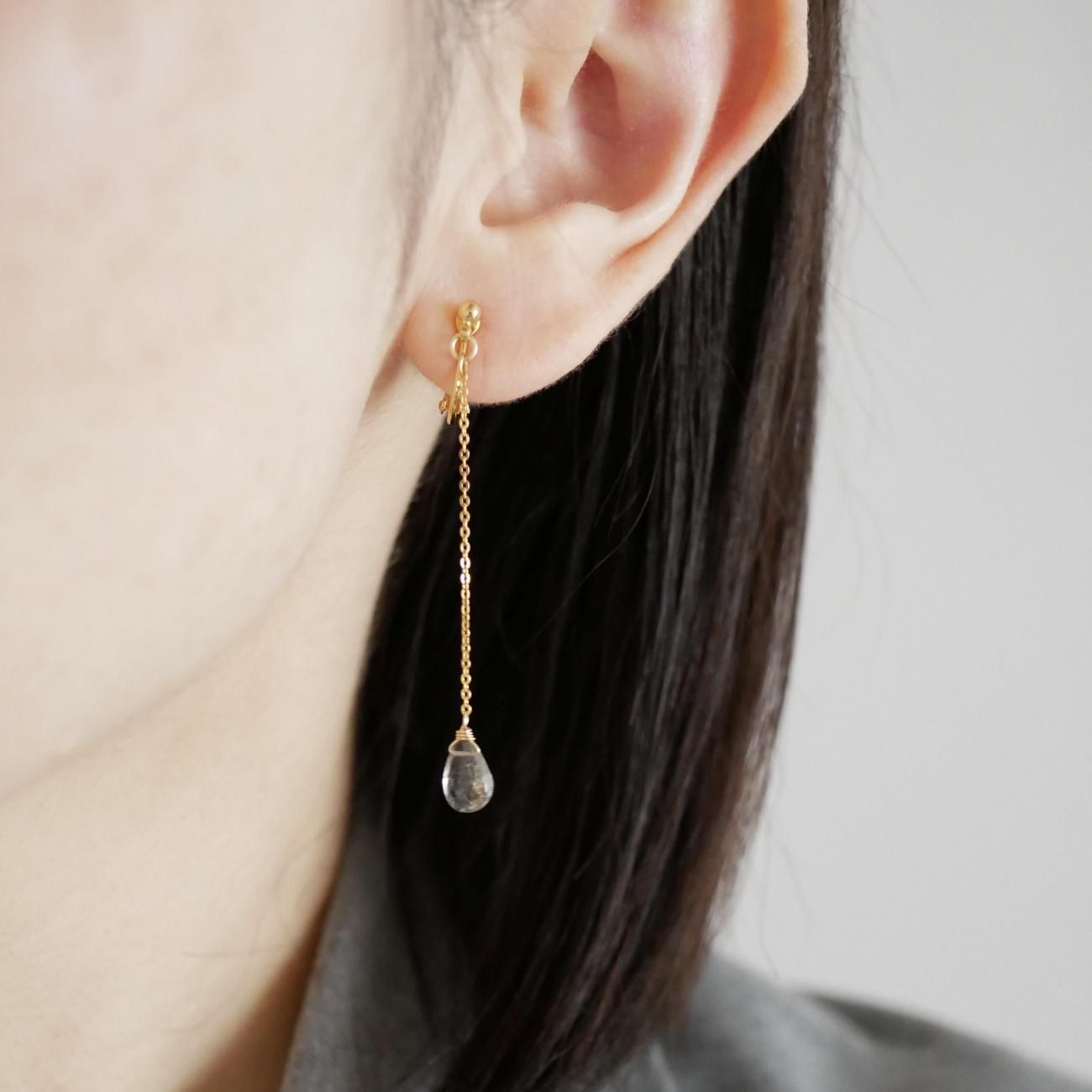 カイヤナイトの天然石イヤリング【Sizuku】T25