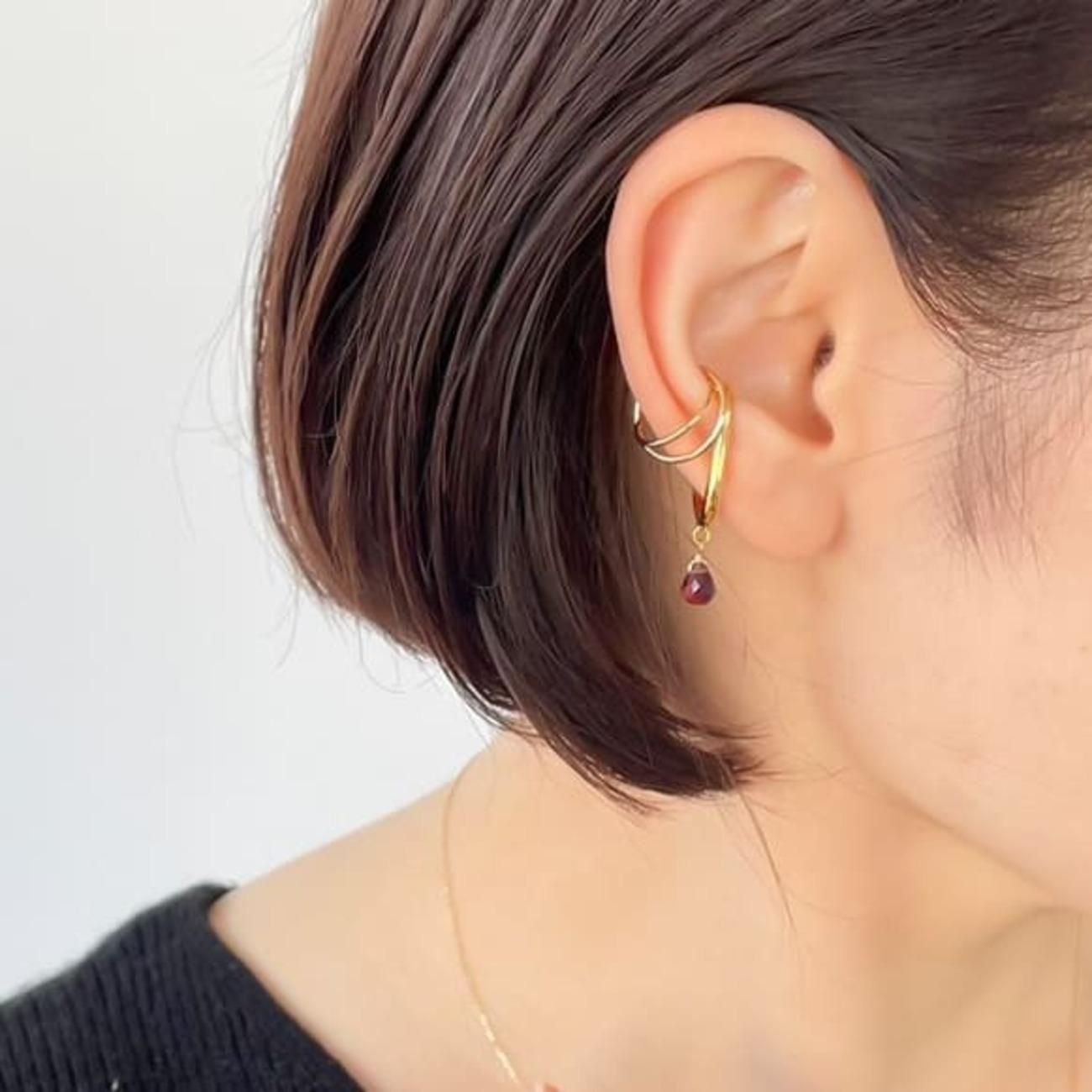 天然石ガーネットのイヤーカフ・秋冬限定色【first】イヤーカフ片耳セット