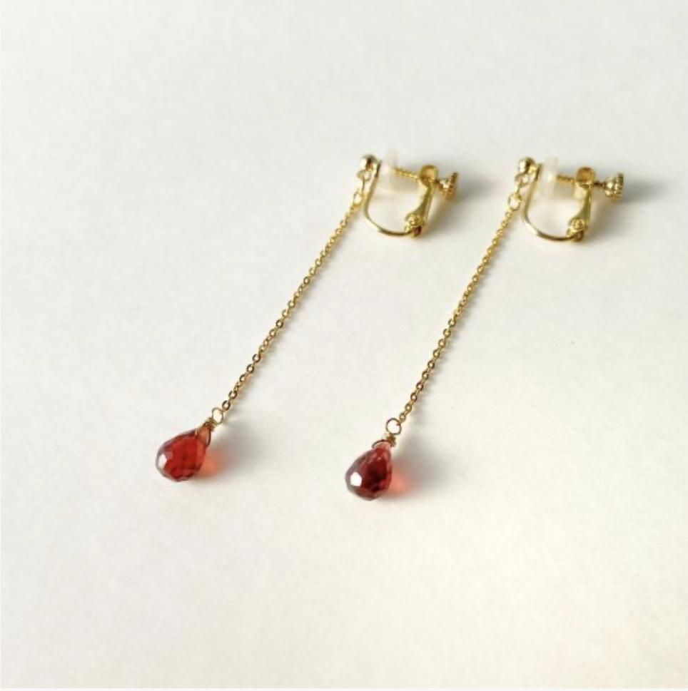 ガーネットの天然石イヤリング・痛くないイヤリングシリーズ【実りの石】03