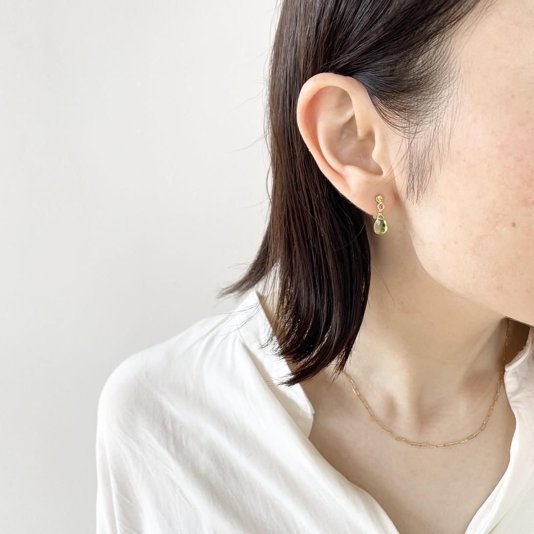 ペリドットの天然石イヤリング【太陽の石】-痛くないイヤリングシリーズ 03