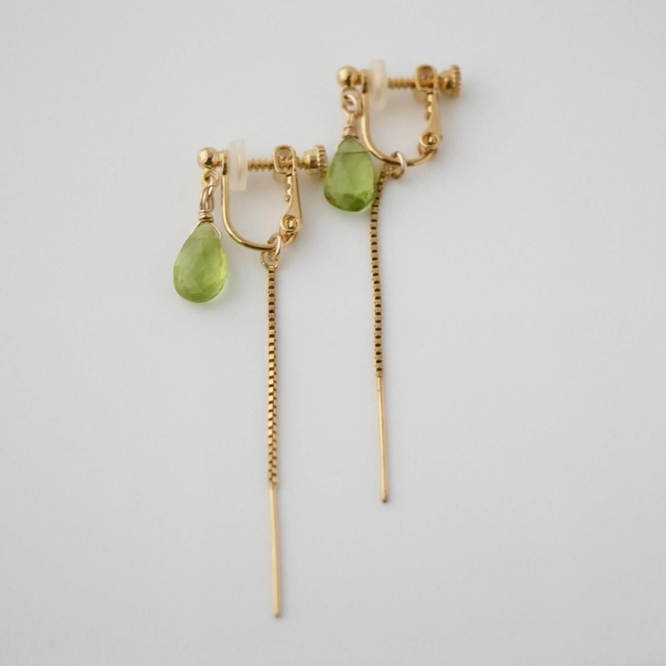 【ペリドットの天然石イヤリング】-痛くないイヤリングシリーズ 01