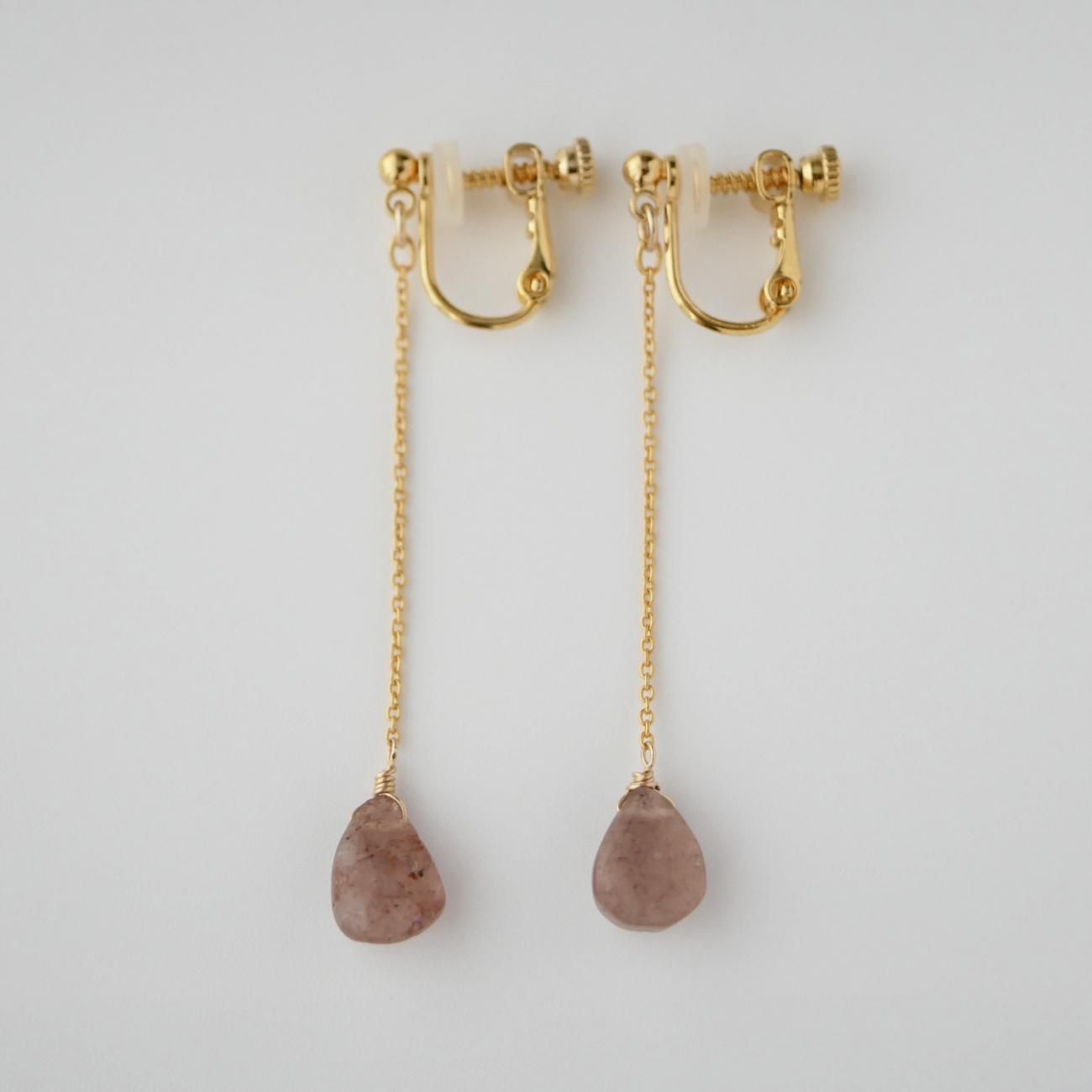 ラスト1点【ストロベリークォーツ】痛くないイヤリングシリーズ 02
