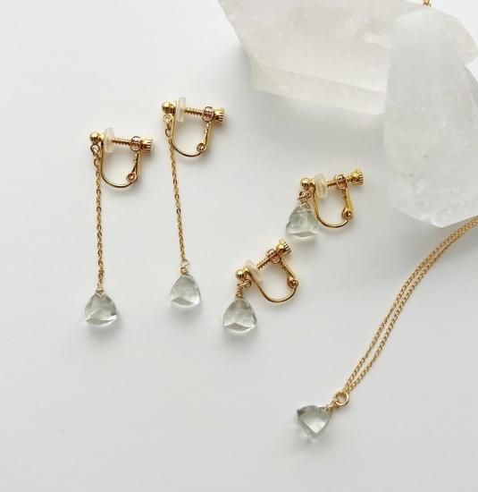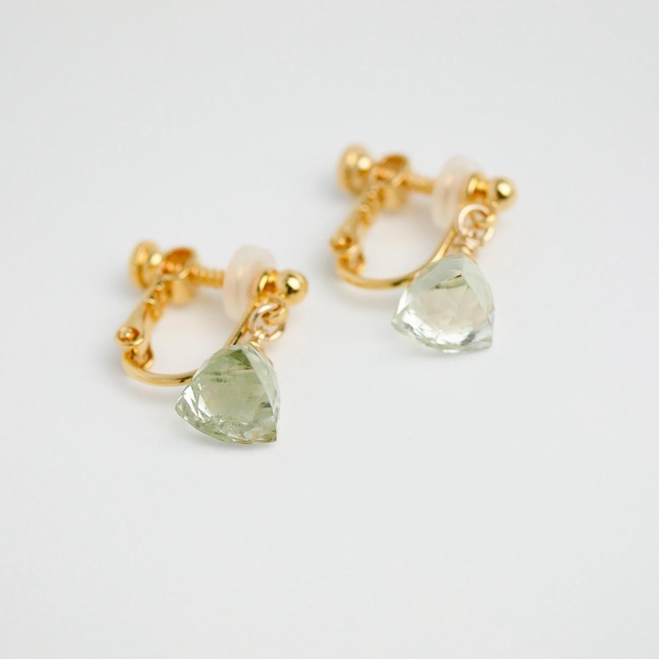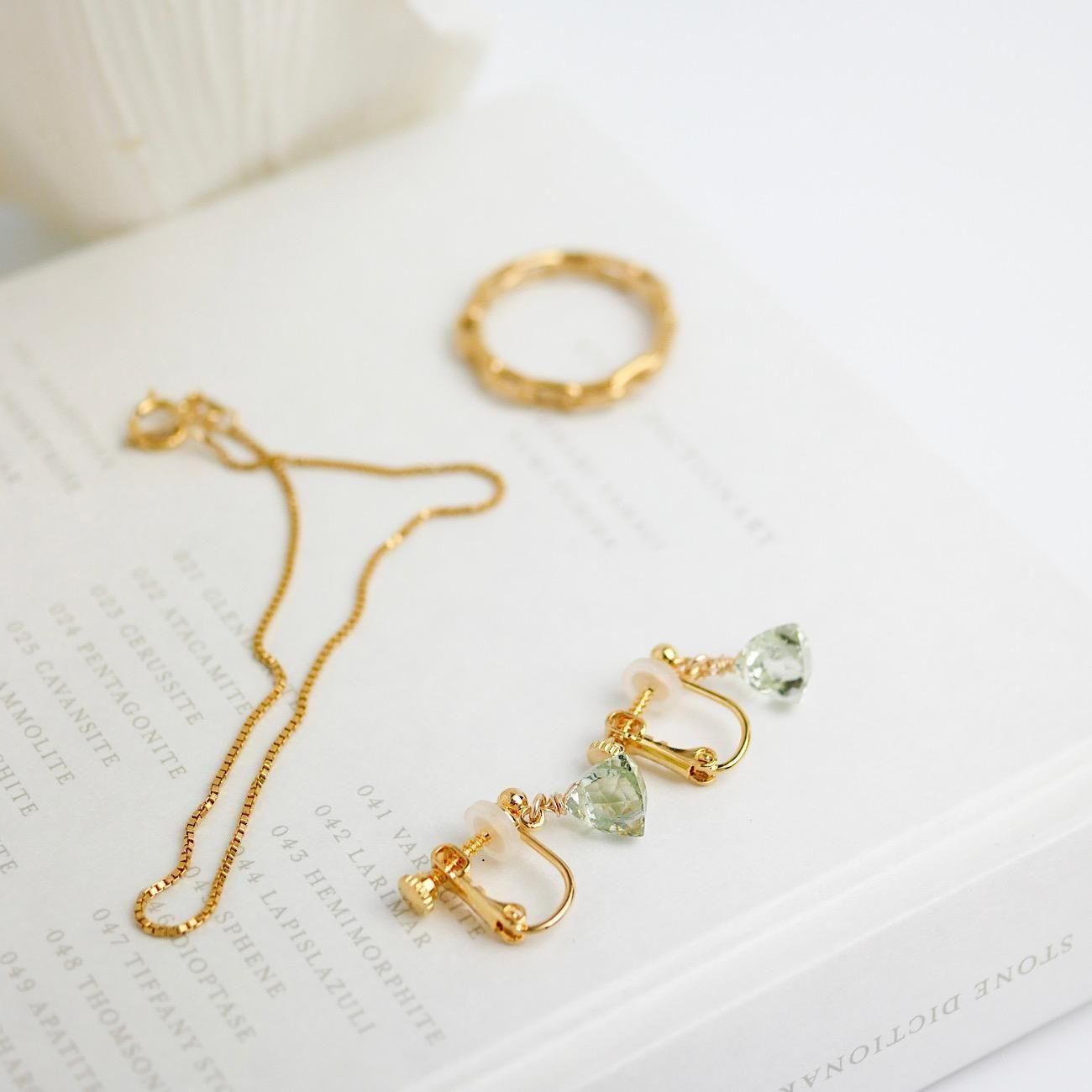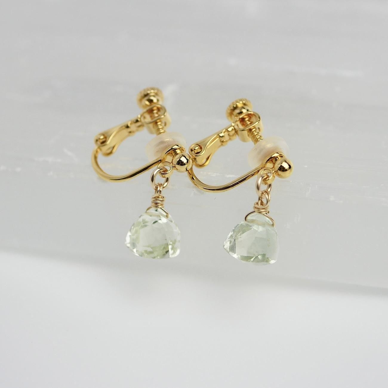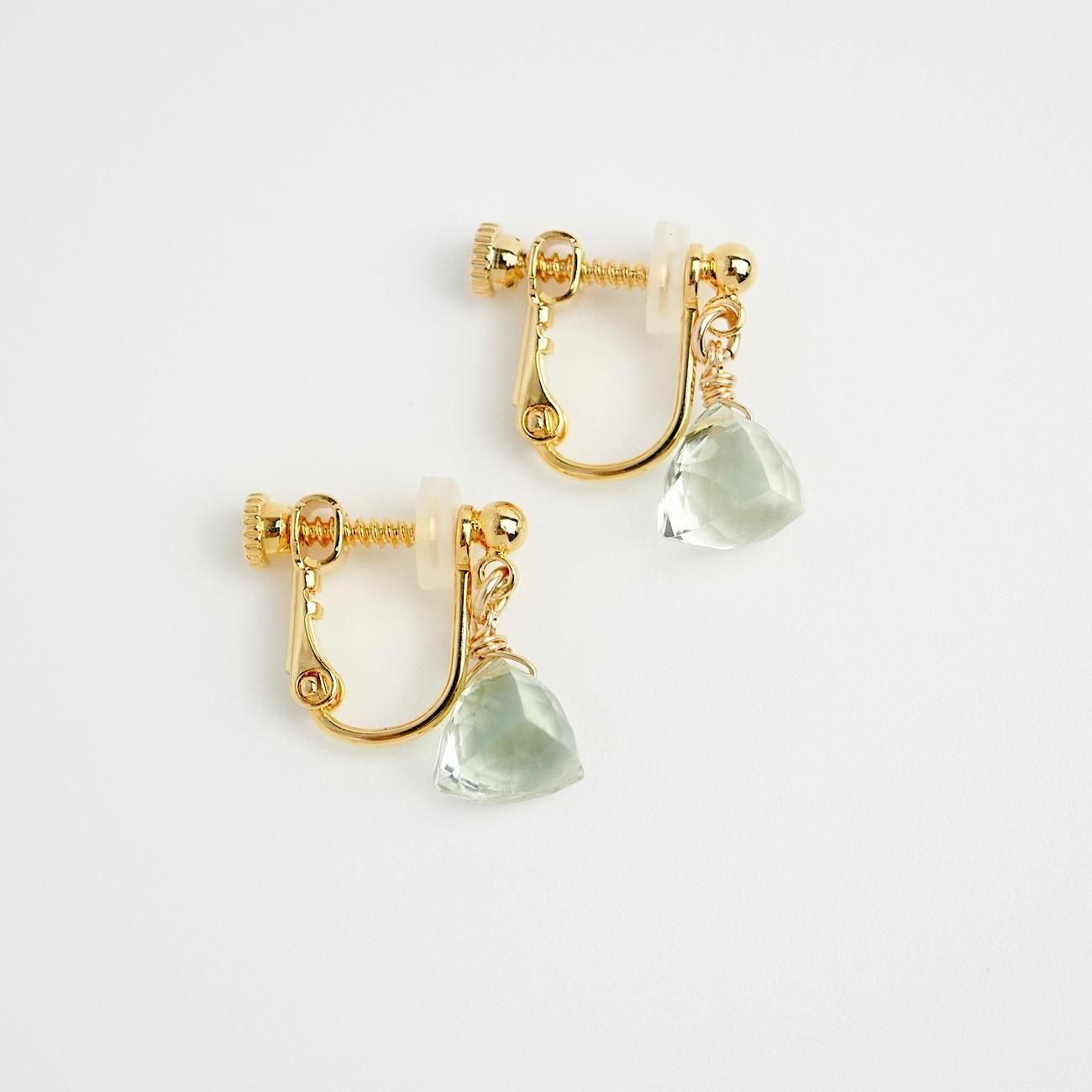 グリーンアメジスト(天然石)-痛くないイヤリングシリーズ-【初夏の朝】
