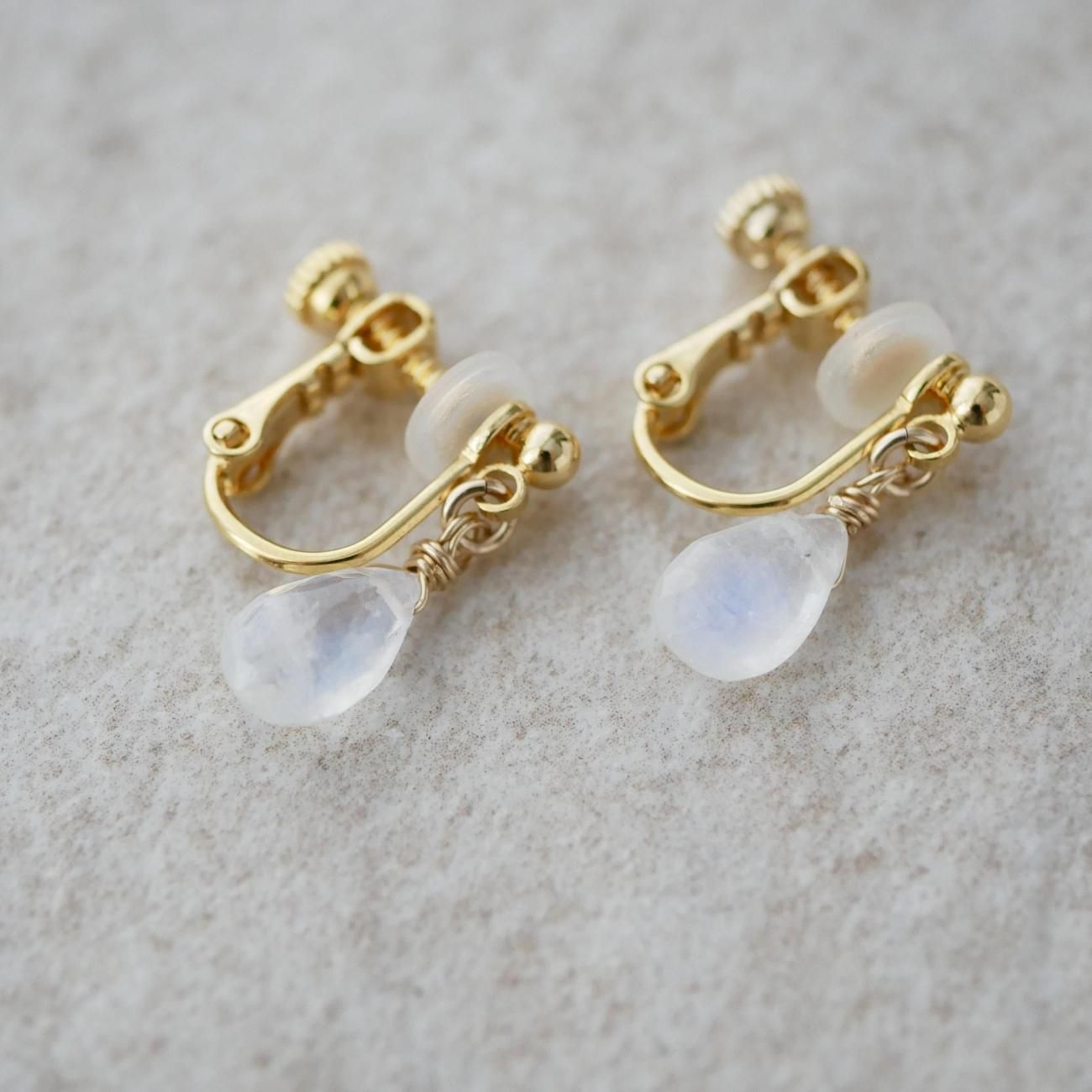 【痛くないイヤリングシリーズ】ムーンストーン・天然石のイヤリング T17