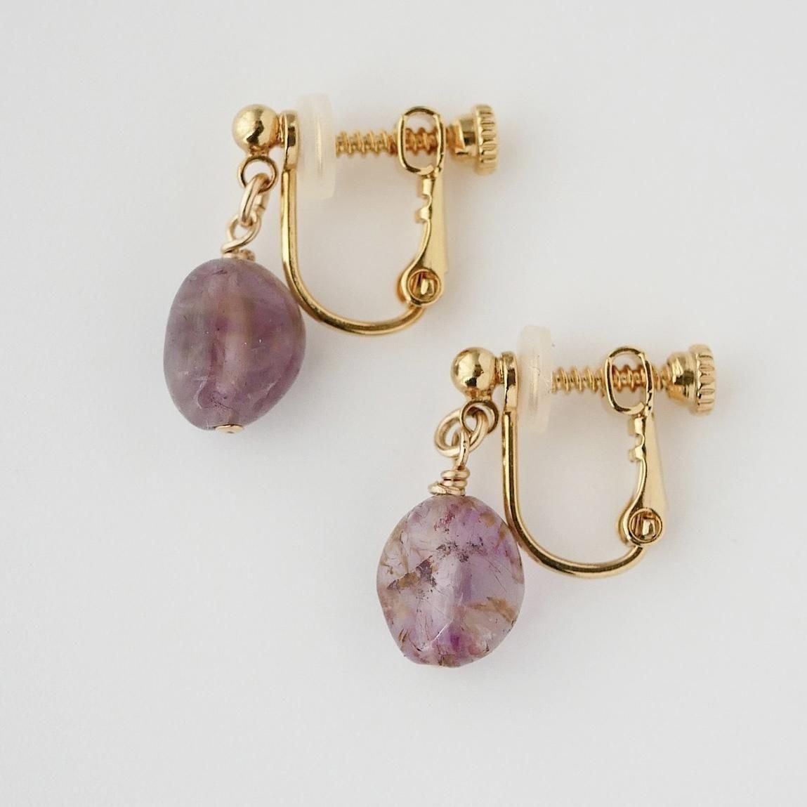 ひとつひとつ柄のでかたや色合いが違う石「スーパーセブン(Super Seven)」をあしらった、世界にひとつだけのイヤリング。