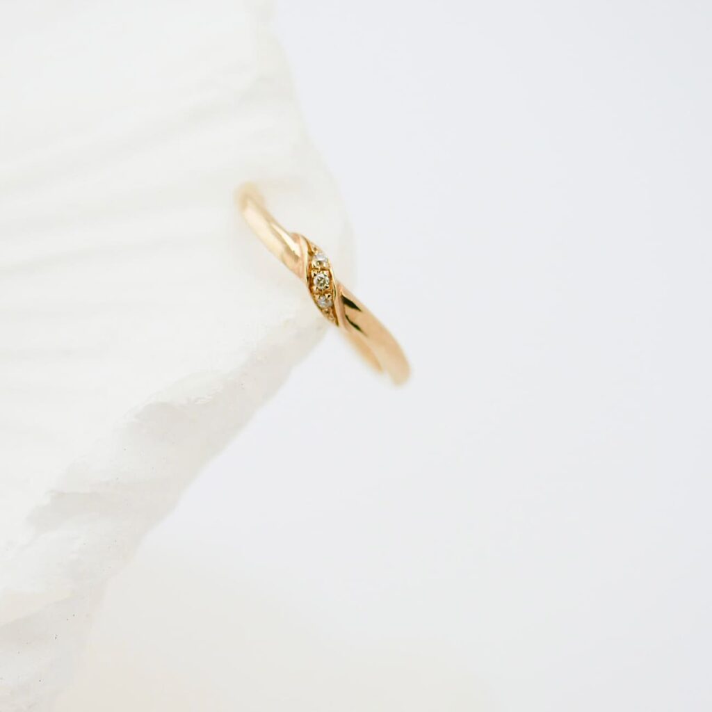 地金の艶やダイヤのきらめきは、華やかすぎず、それでいて凛とした存在感を添えてくれます。